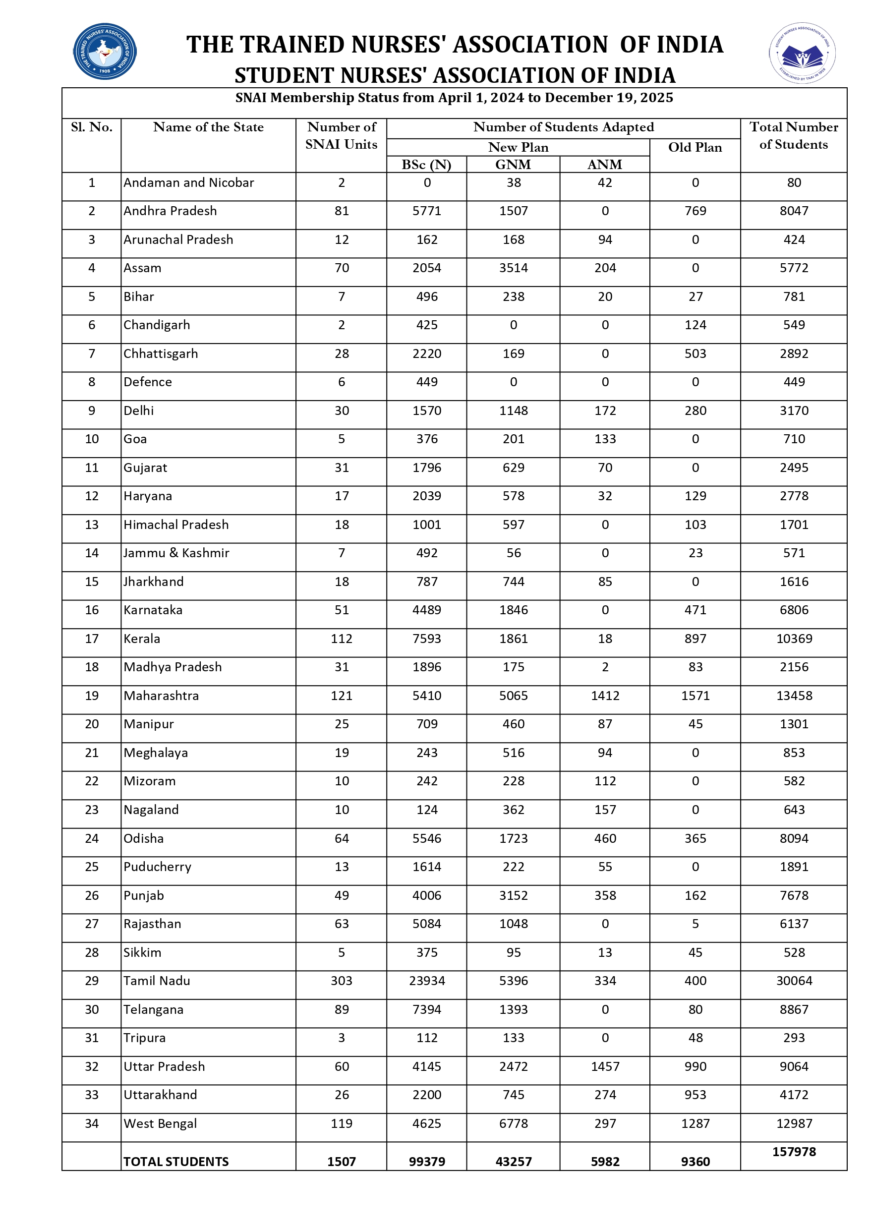 Further the SNAI units are expanded gradually to many nursing institutions in India and started functioning. Now there are 900 SNAI units and 150000 SNAI members in the country.